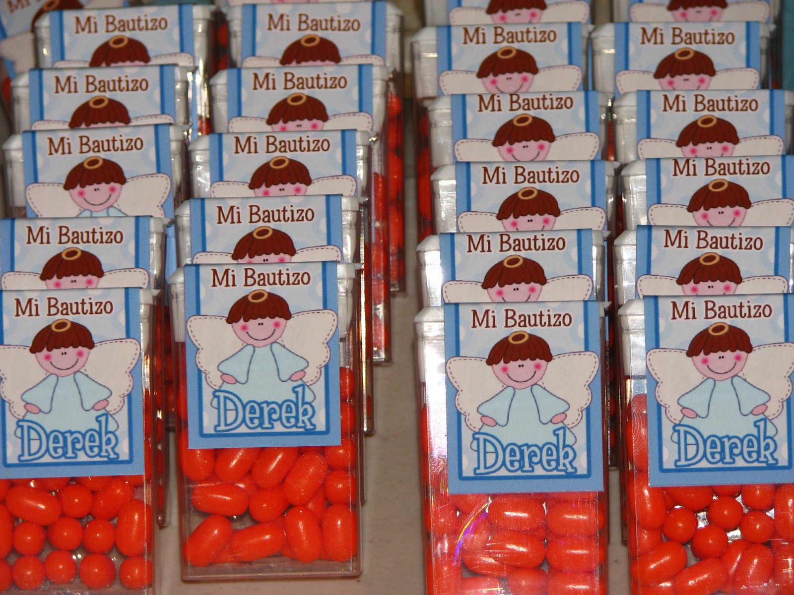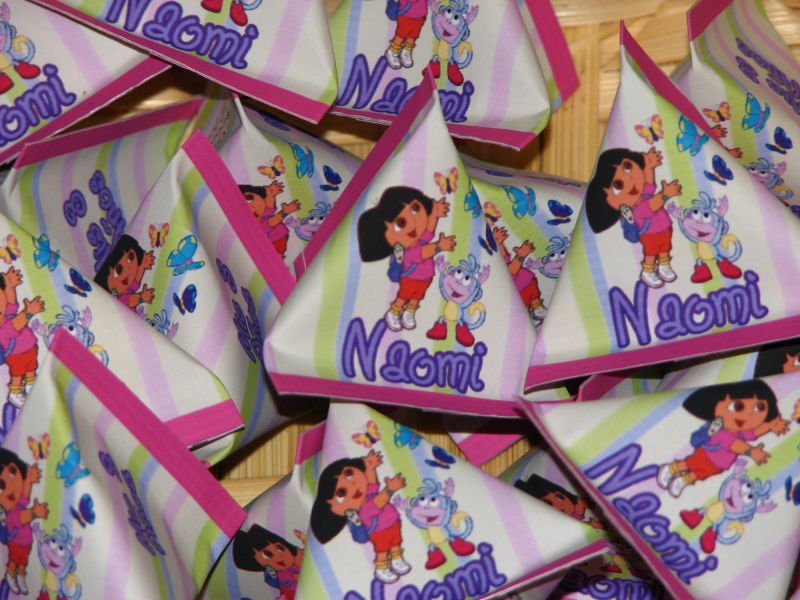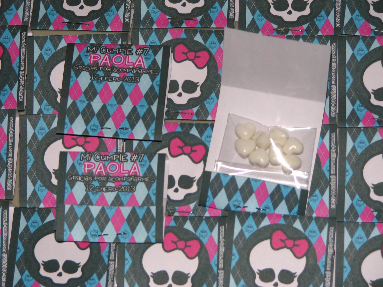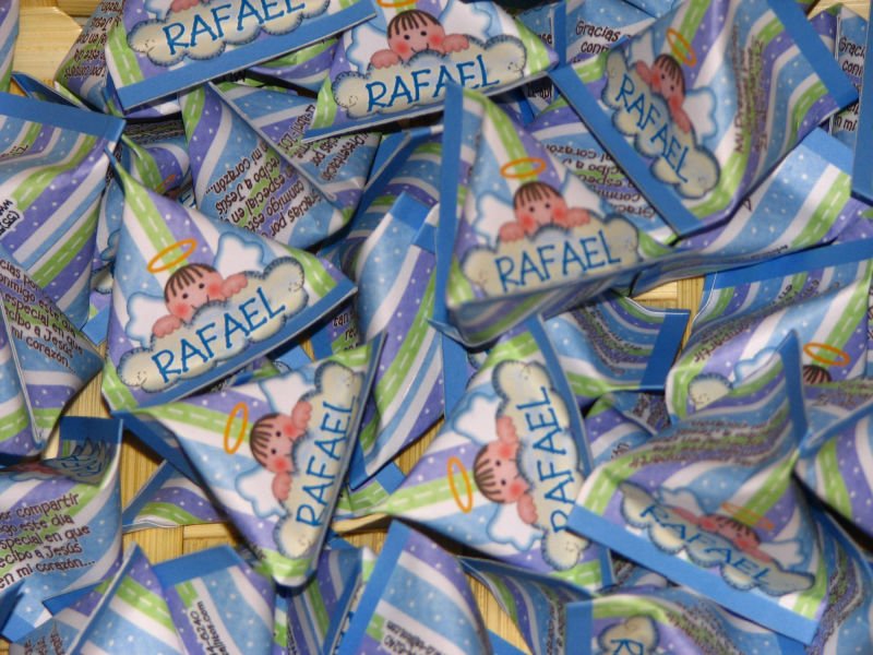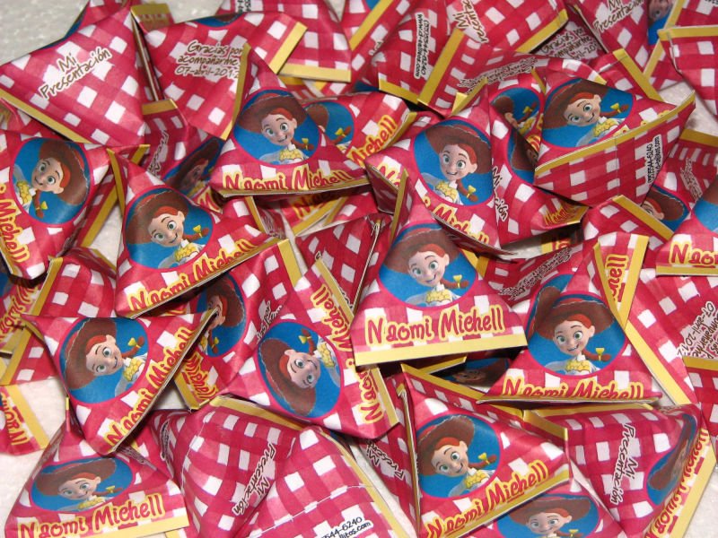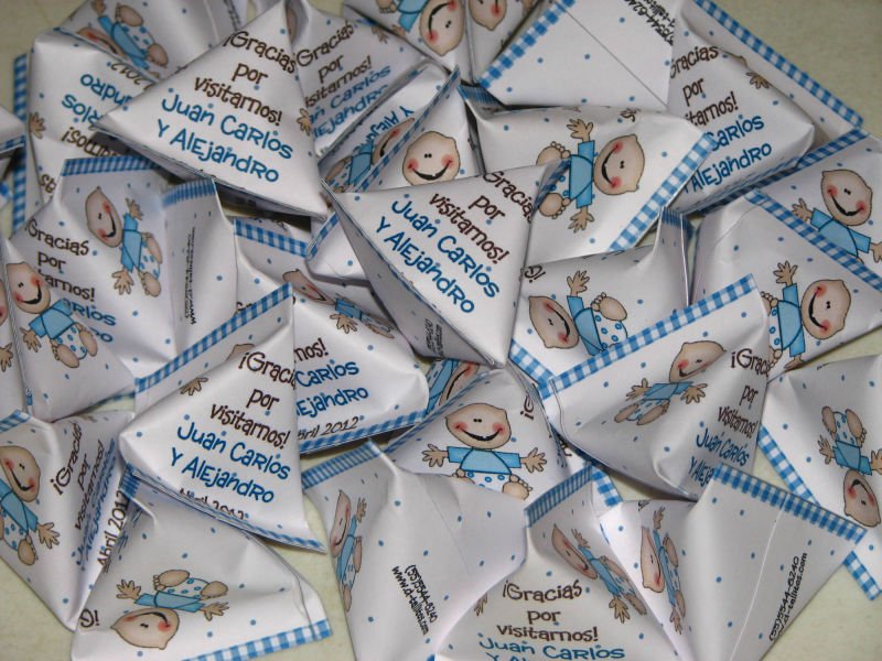 Mentitas en forma de corazón en triangulito tipo boing personalizado con imágenes y datos de tu evento.